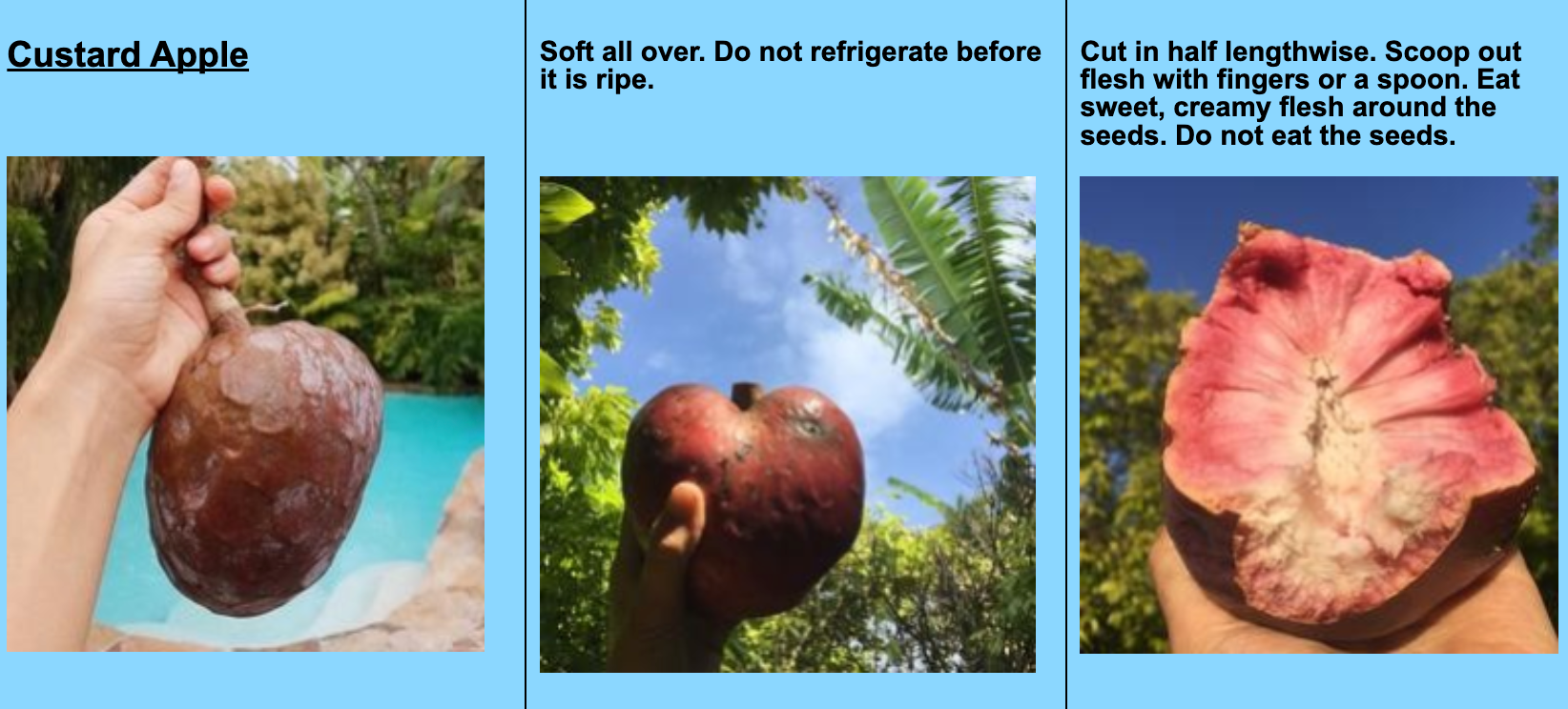 Origin: Custard Apple is Native to the Americas. Custard apple is a common name for a fruit and for the tree that bears it, Annona Reticulata. This rare Annona is limited in availability.